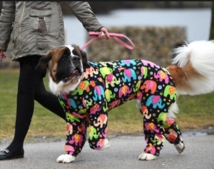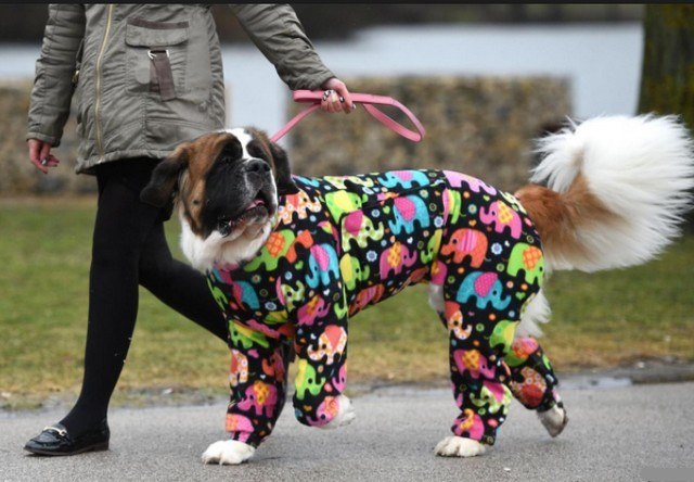Luna, a 5-year-old Saint Bernard, was dressed in a particularly colourful combination yesterday. Accompanied by his master, the animal was on its way to participate in the Crufts Dogs Show, an important dog competition. It runs until Sunday at the National Exhibition Centre in Birmingham, London. More than 20,000 dogs are expected on this occasion.