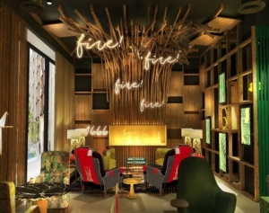 One of the most remarkable elements of the hall will be the sculpture of Big Ben in the shape of a rocket. Eclectic and colourful furniture on pixelated carpets will invite guests to relax, including an LED fireplace that will provide a warm and relaxed atmosphere.