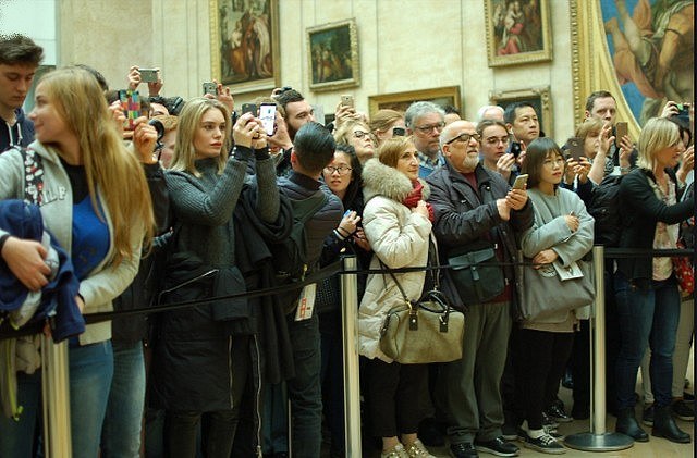 In Paris, the Louvre Museum displays a full house and represses tourists