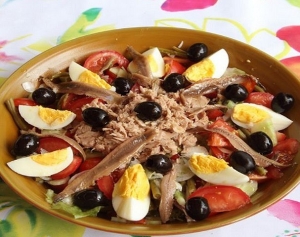 La salade niçoise est une spécialité culinaire traditionnelle de la cuisine niçoise, à ce jour répandue dans le monde entier sous de multiples variantes et adaptations. Elle constitue l’une des principales entrées des cuisines provençale et méditerranéenne, voire un repas à part entière.