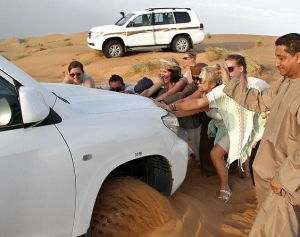 Le transfert en 4X4, en début d’après-midi, dans la région des Wahiba Sands, aura encore une fois été propice à une pratique ayant tendance à s’instaurer dans le groupe : la sieste, sur fond de musique des grands standards omanais….